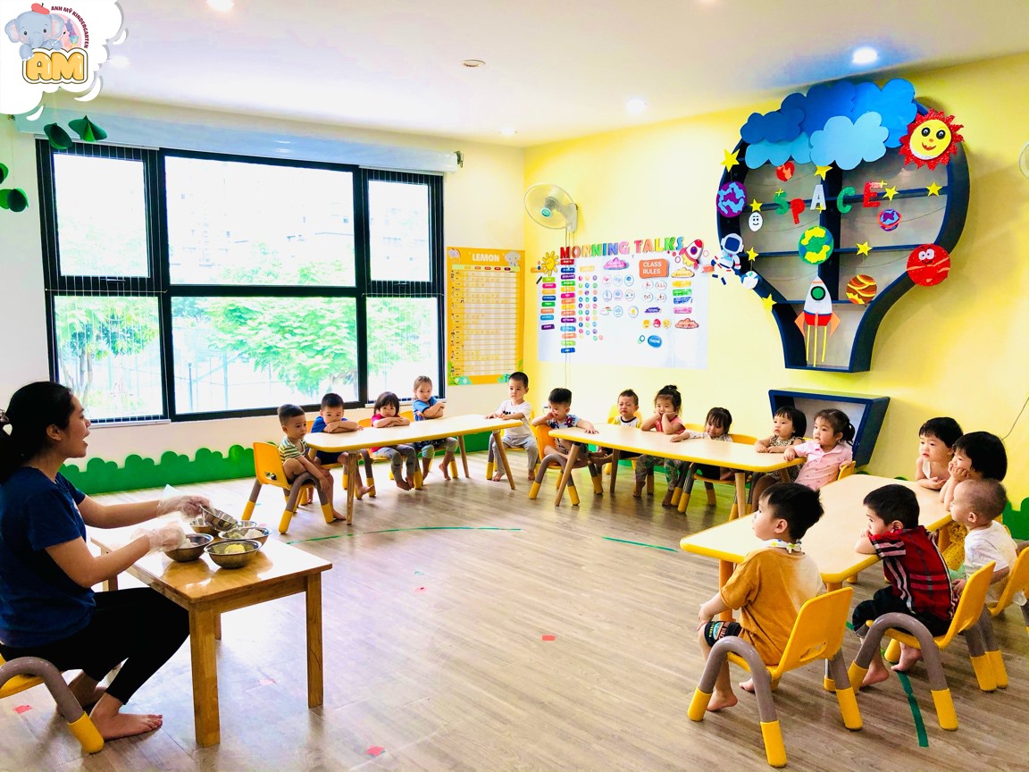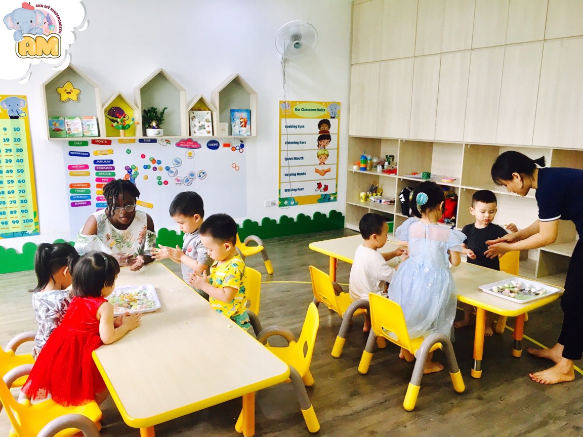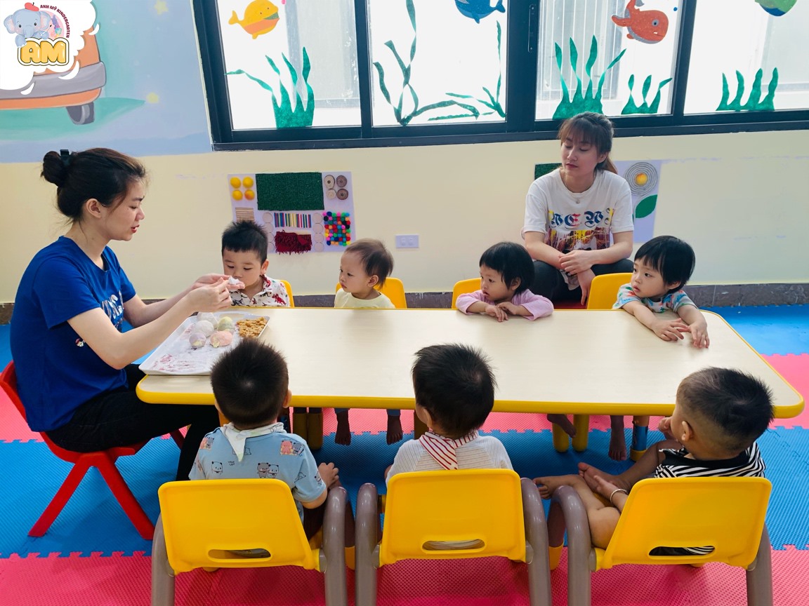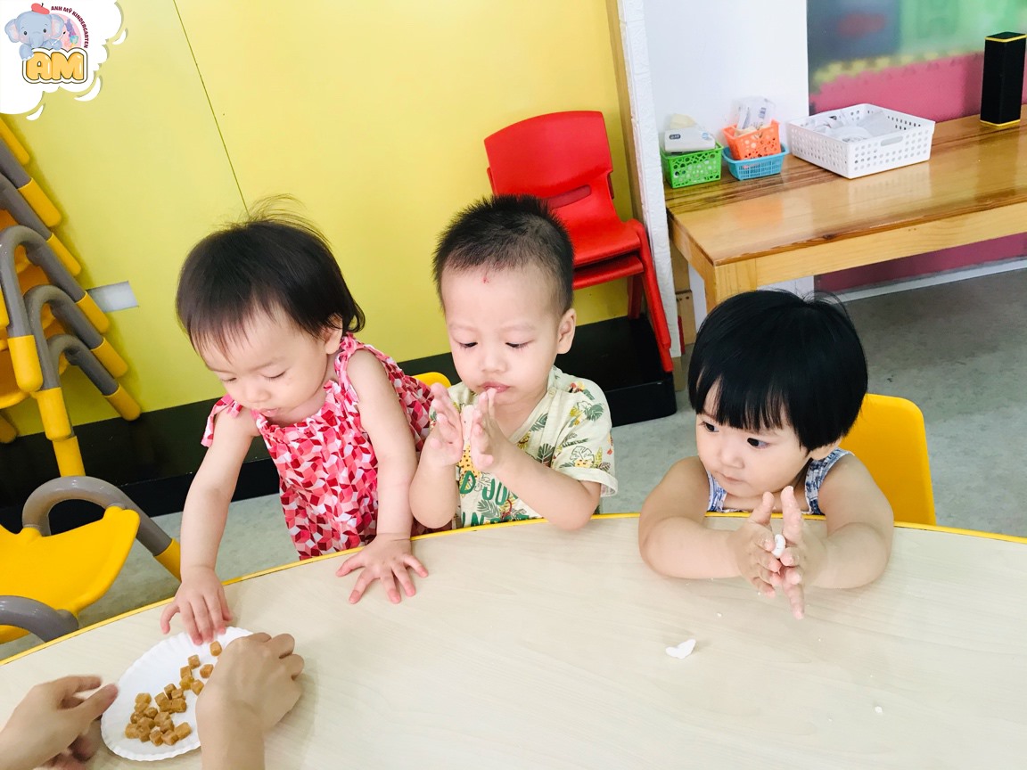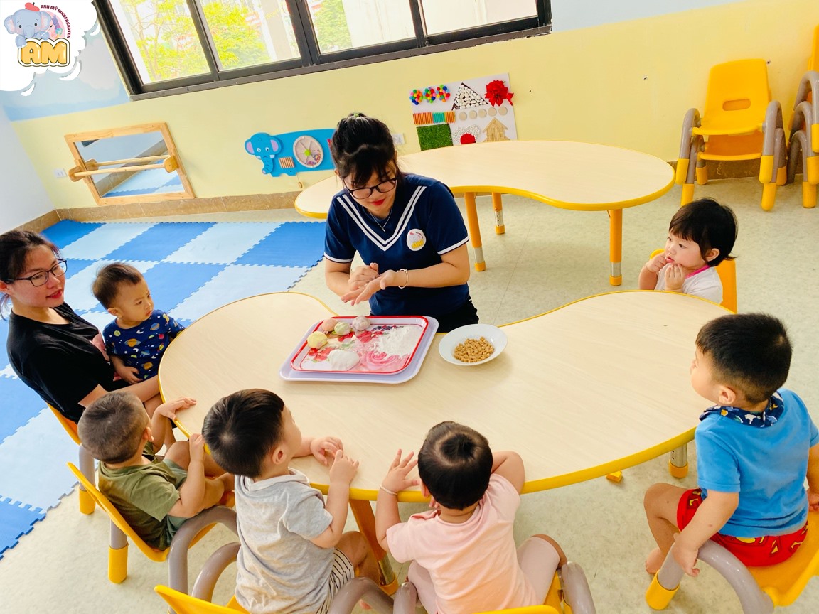 Sau khi đã rửa tay sạch sẽ, các bạn nhỏ AMG đã được bắt tay vào tự nặn những viên bánh trôi thật nhiều màu sắc. Các con được rèn luyện kỹ năng xoay tròn cùng sự khéo léo của đôi bàn tay, cả lớp vô cùng háo hức vì đã được tự tay mình nặn ra những viên bánh trôi xinh xinh. ![]()